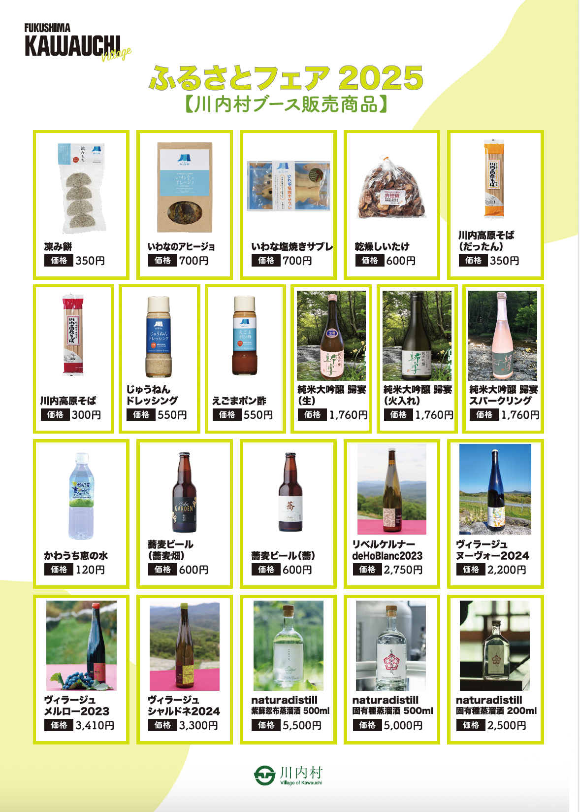 川内村ブースで販売予定の商品はこちらをご覧ください。
